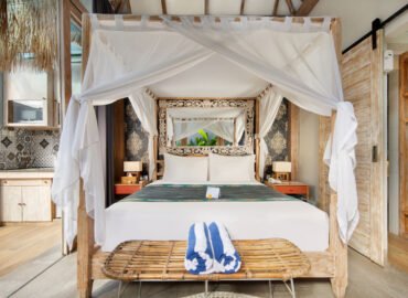 Experience unparalleled comfort and privacy in our 62 m² Star Villa, featuring a super king bed and a spacious living area. Enjoy your exclusive private pool with an integrated hot tub, and unwind on your private patio or terrace overlooking the pool. Contemporary Indonesian design, elegant four-poster details, rich wooden accents, distinctive patterned textiles, and serene outdoor spaces come together to create a tranquil and luxurious retreat.