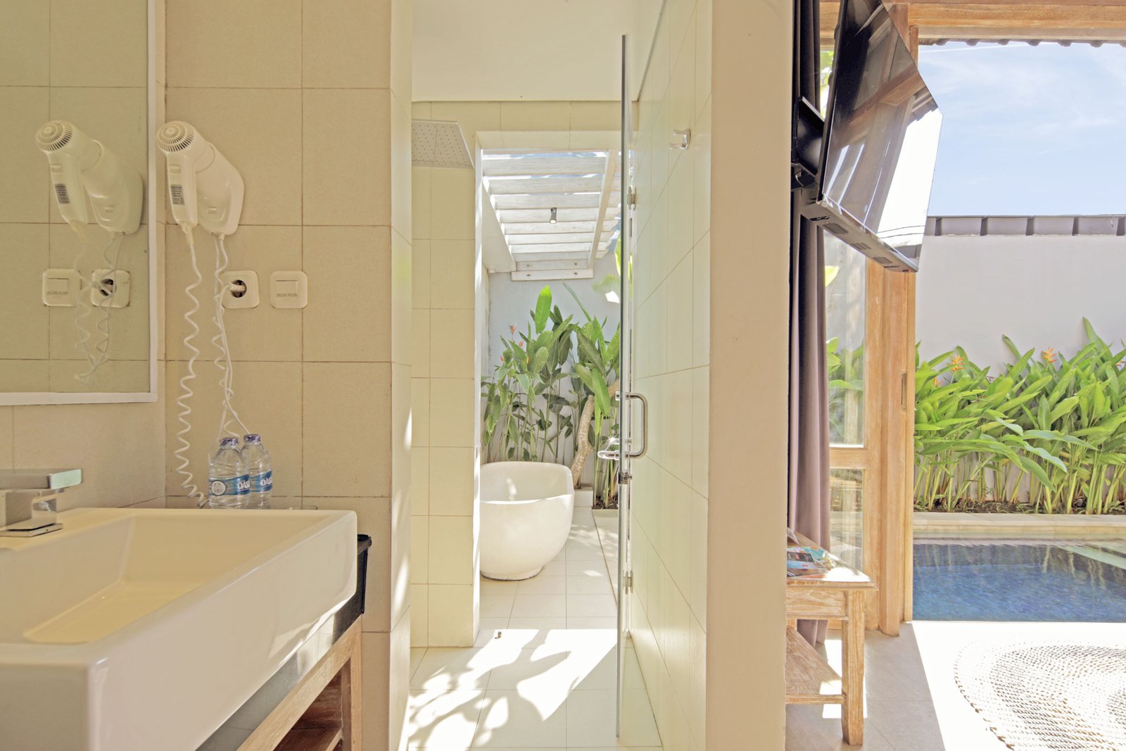 Experience unparalleled comfort and privacy in our 62 m² Star Villa, featuring a super king bed and a spacious living area. Enjoy your exclusive private pool with an integrated hot tub, and unwind on your private patio or terrace overlooking the pool. Contemporary Indonesian design, elegant four-poster details, rich wooden accents, distinctive patterned textiles, and serene outdoor spaces come together to create a tranquil and luxurious retreat.